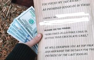 This is the letter that was double vacuum-sealed inside the box along with $2000.00. The winners split the money and met me at Kwik Trip for the last $500 and a photo. They are a fantastic, brilliant, motivated tribe of hunters that solved my every clue. Good Job Keanu, Tim and Sarah!